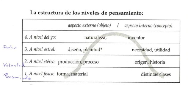 Es conveniente trabajar los grupos de dos en dos, por ejemplo: 1º y 2º, 3º y 5º, etc… después en grupos de tres y de cuatro. Hay que relacionar el pensar, el sentir y la voluntad con lo físico, lo etéreo y lo astral. Siempre hay que relacionar todo con experiencias personales. Se trata del pensar sobre el pensar en sí mismo. Todos estos ejercicios llevarán nuestras facultades ordinarias de pensar, sentir y voluntad a un nivel superior.